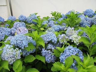 梅雨というとあまりいいイメージでないものの印象が多いのかもしれませんが、その中で紫陽花はいいイメージと思えるもののひとつではないでしょうか。本校の校舎東側の花壇では、今まさに紫陽花が咲き誇っています。青い色の花が中心ですが、よく見ると微妙に色が違っています。なぜ紫陽花の花は色が違うのでしょうね。