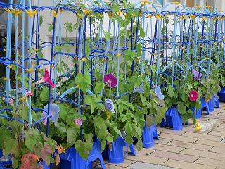 高学年昇降口の外には色鮮やかに花が咲いています。