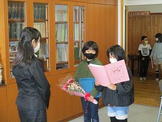 今日学校では、表彰と終業式、お別れの会を行いました。お別れの会は、現在本校を離れることがわかっている3人の先生方を紹介し、ご挨拶をいただきました。児童からは心温まるお手紙と花束を贈られ、この1年お世話になったことへの感謝を表していました。3人の先生方には、健康に留意され、新天地でのご活躍をお祈りしたいと思います。