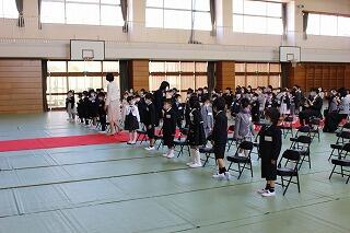 新任式では、10人の新しい先生方の挨拶がありました。みんな静かによく聞いていました。