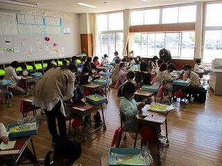 今、家庭訪問中のため、いつもより早く下校しています。みんなうれしそうかな?