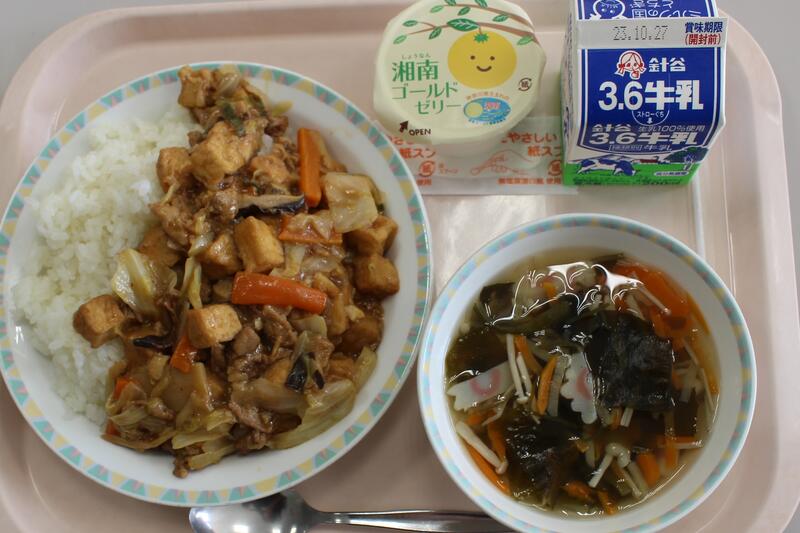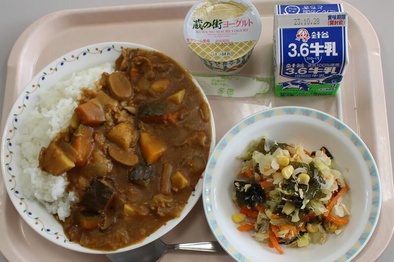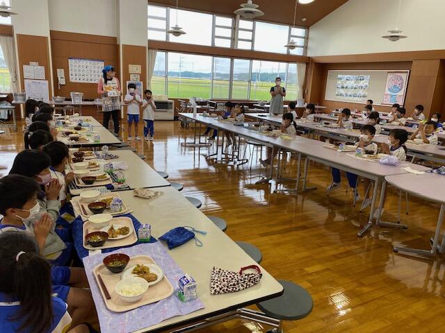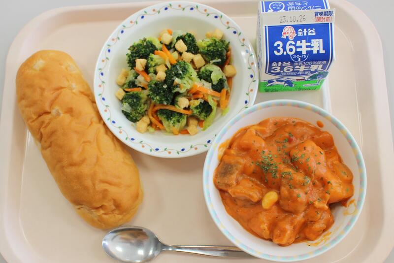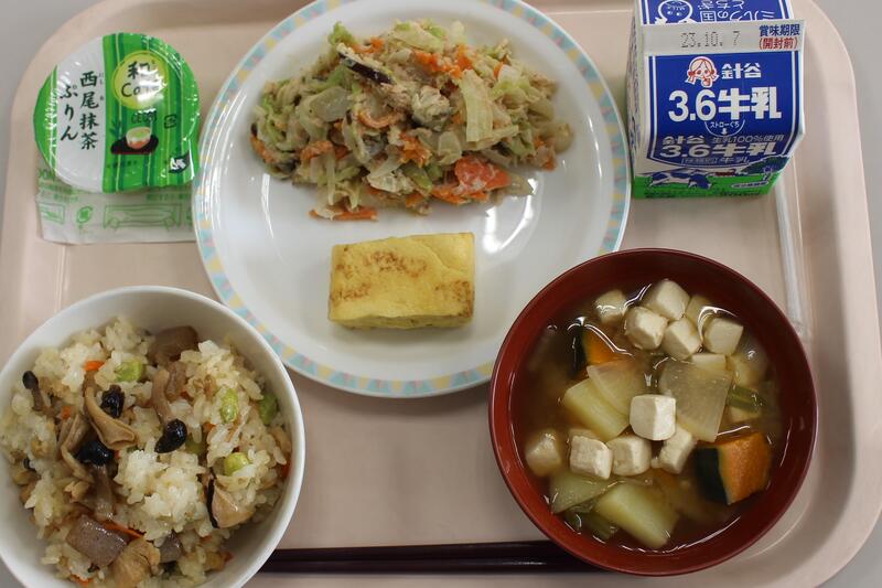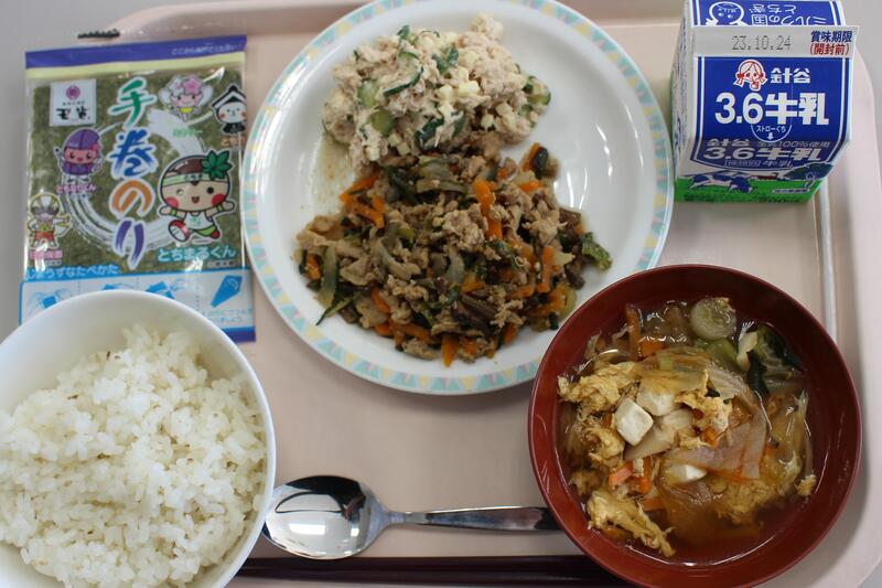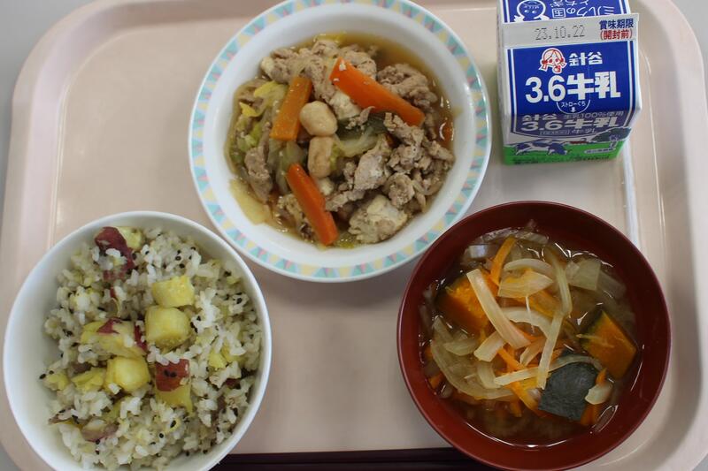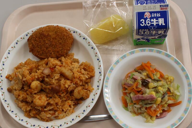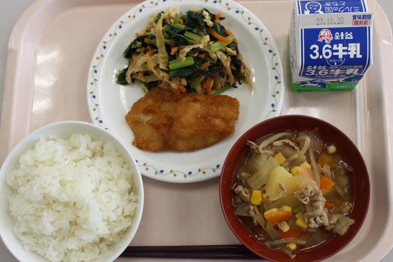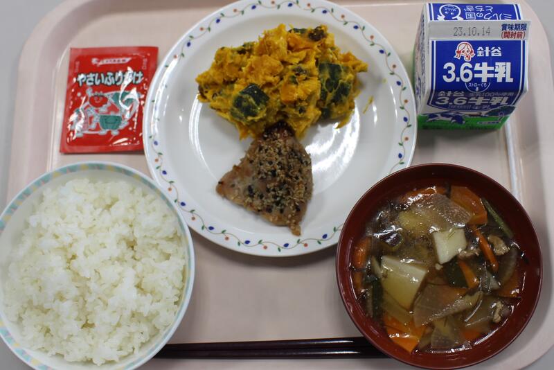 本日の給食 10/4 ※今月のランチルーム使用は2年生! そして、5年生が収穫したお米を使用しました!