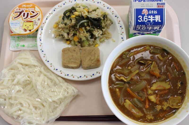 芳賀町梨カレー、牛乳、芳賀町産野菜のコールスローサラダ、芳賀町産の梨