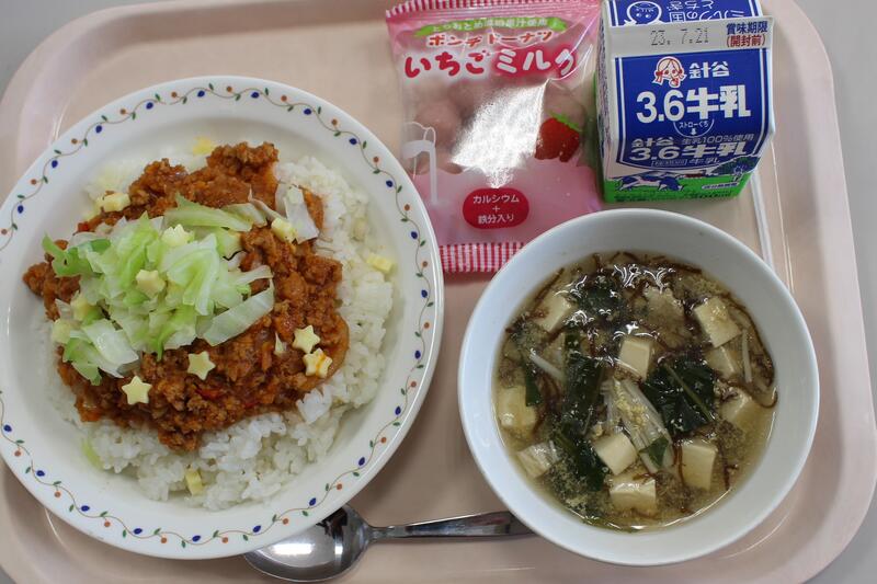 ナン(7/6ナンの日)、牛乳、キーマカレー、春雨サラダ、芳賀町産朝採りとうもろこし