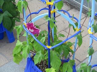 アサガオも暑さに苦労しているように見えます。朝の水やりが大変そうです。