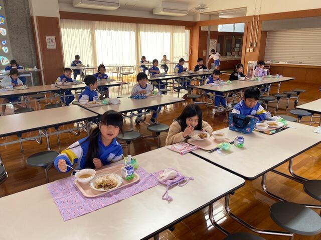 今日からランチルーム利用は2年生になりました!みんなで仲良く、いただきます!!