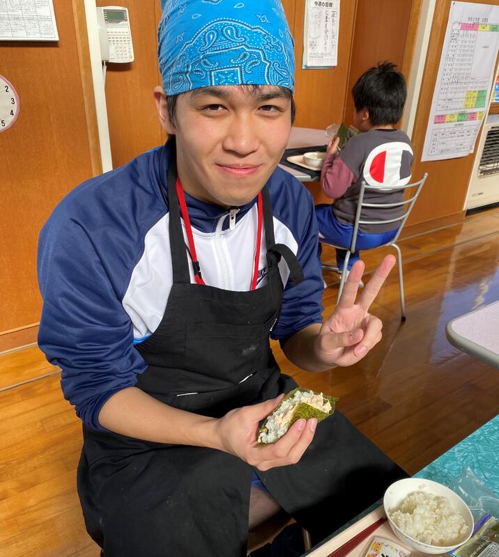 節分と言えば恵方巻。今年の恵方は『南南東』ランチルームで3年生が手巻き寿司を黙って食べている風景です!