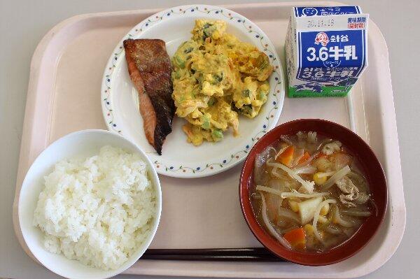 ごはん、牛乳、シロイトタラの西京焼き、ひじき煮、みそ汁
