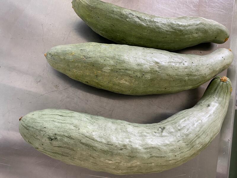 芳賀町いっぱいウィークも4日目になります。写真は今日のいなか汁で使用した“細長かぼちゃ”と“八つ頭”です。もちろん、どちらも町産の食材です!