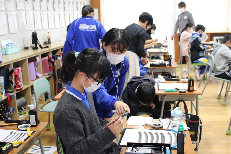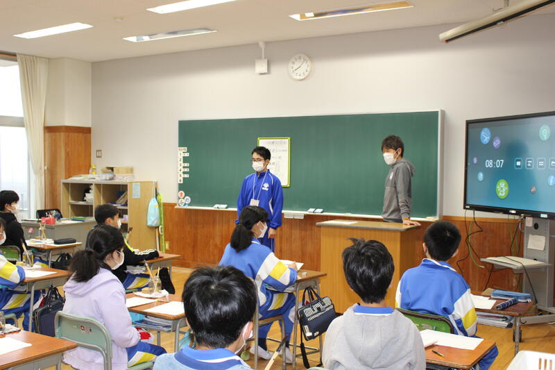 本日から三日間、芳賀中学校のマイ・チャレンジが行われ、本校出身の三名の生徒が体験活動に来校しています!児童たちとの触れ合いを通して、有意義な体験をしてもらいたい、と願います!!