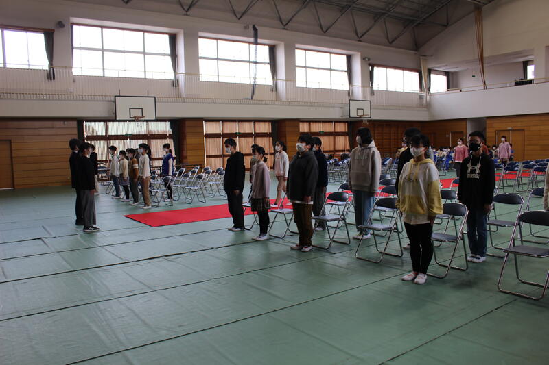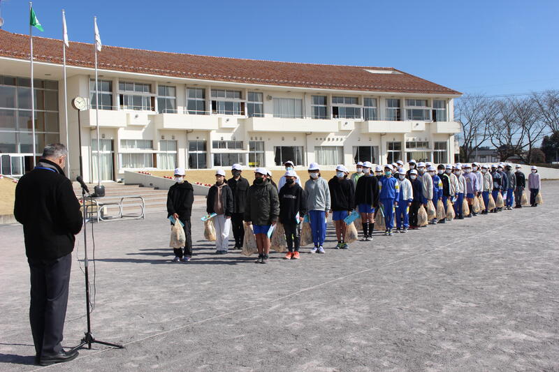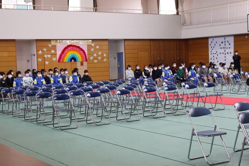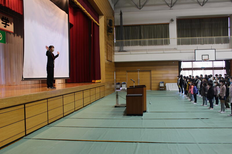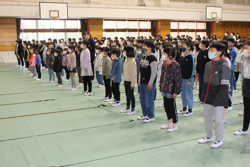 「17日間という短い冬休みでしたが、ゆっくりと体を休め、3学期への元気を蓄えることができましたか?1月1日に目標を立ててくれたと思います。校長先生の目標は、新しいことに『挑戦』することです。みなさんも目標をいくつか作り、“達成”を繰り返すことによって大きな目標にたどり着くことができるはずです。1年後の自分の姿を思い浮かべながら目標を確認してください。また、コロナウイルス感染症対策をしている毎日が日常になるように意識を高めましょう。3学期は2か月半ほどしかありませんが、次の段階に『挑戦』するための準備をしなければならない大切な学期です。みんなで『学ぶ子 守る子 がんばる子』になるために、やるべきことをやっていきましょう。皆さんの活躍を期待しています。」