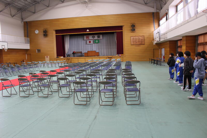 3月17日(金)の卒業式に向けて、5年生による会場準備が本格的に始まりました。