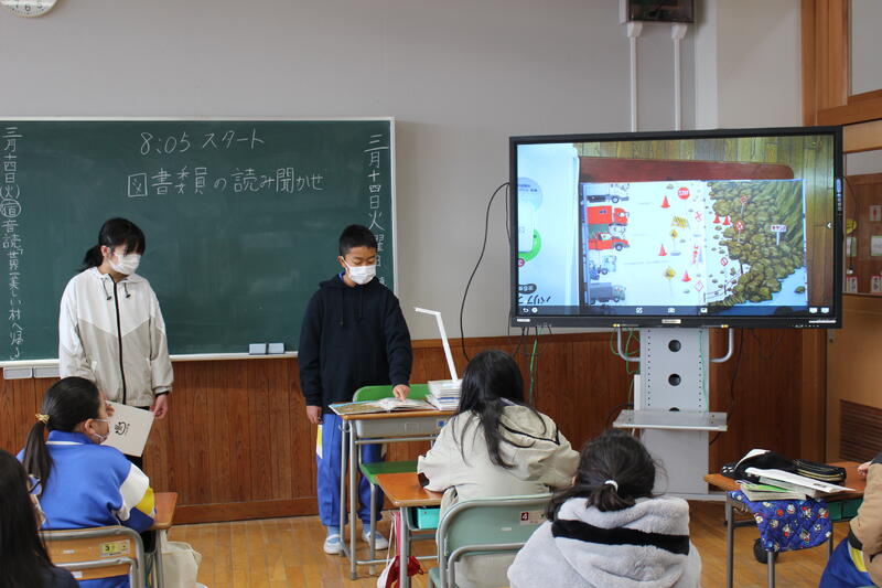 今朝の読み聞かせは『図書委員による読み聞かせ』でした。写真は1~4年生の教室の様子ですが、図書委員さんが一生懸命にお話をしてくれていました。楽しい読み聞かせ、ありがとうございました!