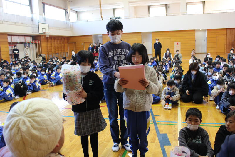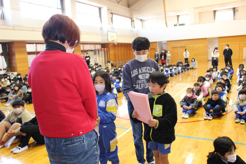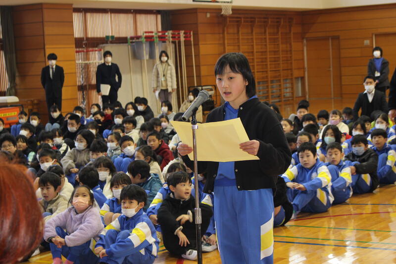 次に2、4年生の児童代表から「新年・3学期の抱負」についての作文発表がありました。たいへん立派な発表でした。よい思い出が作れるように、みんなで頑張っていきましょう!