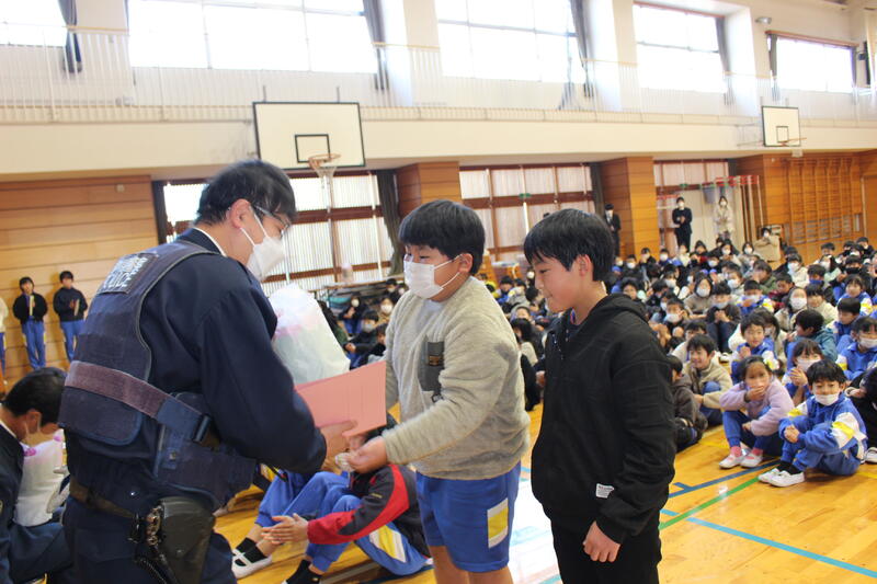 本日、避難訓練③として、真岡警察署警察スクールサポーター小林様と芳志戸駐在所町井様を講師にお迎えして『不審者対応訓練』を実施しました。不審者侵入時の対応訓練の後、体育館に移動し、講話、DVD視聴、代表児童によるロールプレイなどの実技研修を通して、安全対策への理解を深めました!