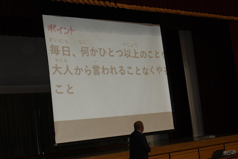 「今年、大活躍したMLB大谷翔平選手は夢を叶えるために「あいさつ」「感謝」「部屋掃除」「読書」など、誰にでもできることを大切にしてきました。『夢へのはじめの一歩』として、冬休みには普段は時間がなくてできなかったことを、計画を立ててやってみましょう。1月9日(火)3学期始業式の朝、元気で明るいあいさつができることを楽しみにしています。」
