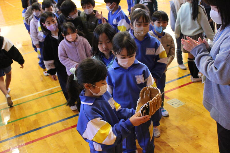 メジャーリーガー、大谷翔平選手から寄贈されたグローブが、芳賀北小学校にも届きました!髙津校長から大谷選手のメッセージを伝えてもらった後、野球部の児童がキャッチボールの見本を見せてくれました!今後、学年ごとに貸し出し、野球を楽しんでもらいたいと思います!!