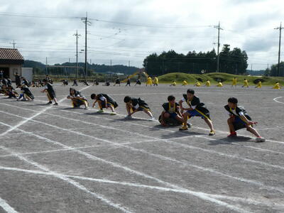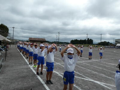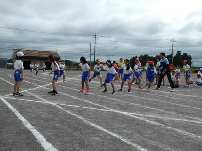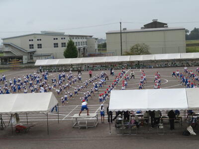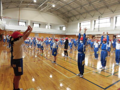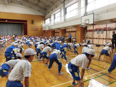 今日は、雨天のため体育館で全体練習を行いました。昨日の予行練習を振り返り、さらによくなるように一生懸命連数する姿が見られました。