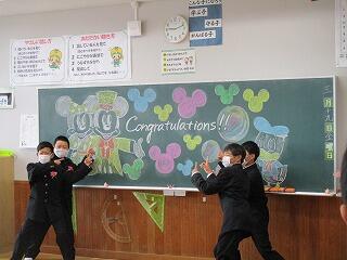いよいよ明日が卒業式となりました。前日の今日は、6年生が参加しての最後の縦割り班清掃や卒業式の準備が行われました。また、6年生への『自主学習頑張りカード』授与を行い、卒業証書をもらうような立派な態度で受け取ってくれました。また、6年生が帰る際には、職員室の南側にきて、それぞれが「6年間お世話になりました。」というあいさつをしてから帰るなど、そういった心遣いができることに感動と喜びを感じました。