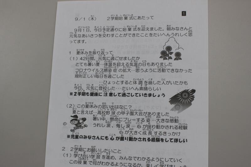 大きなトラブルもなく、69日間(1年生は68日間)の1学期を、無事終了することができました。大変お世話になりました。リモートによる終業式では、表彰の後、小堀校長から次のような講話がありました。