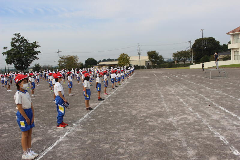 運動会に向けての練習が本格的に始まっています。今朝は全体で開閉会式整列の練習をしました。全員で整列をするのは初めてだったのですが、皆真剣に、静粛に並ぶことができました!本番が楽しみです!!