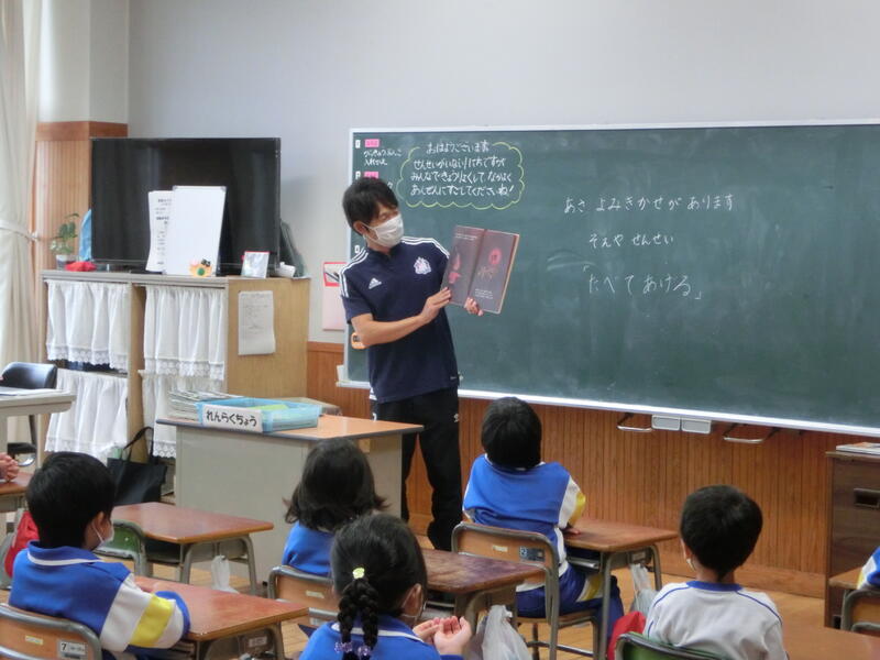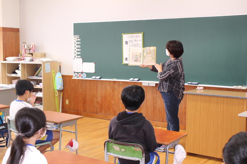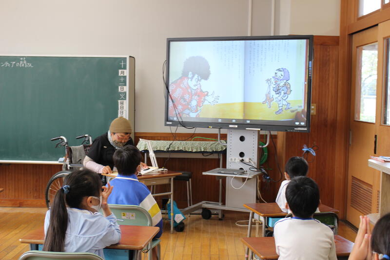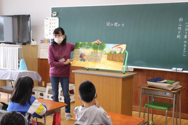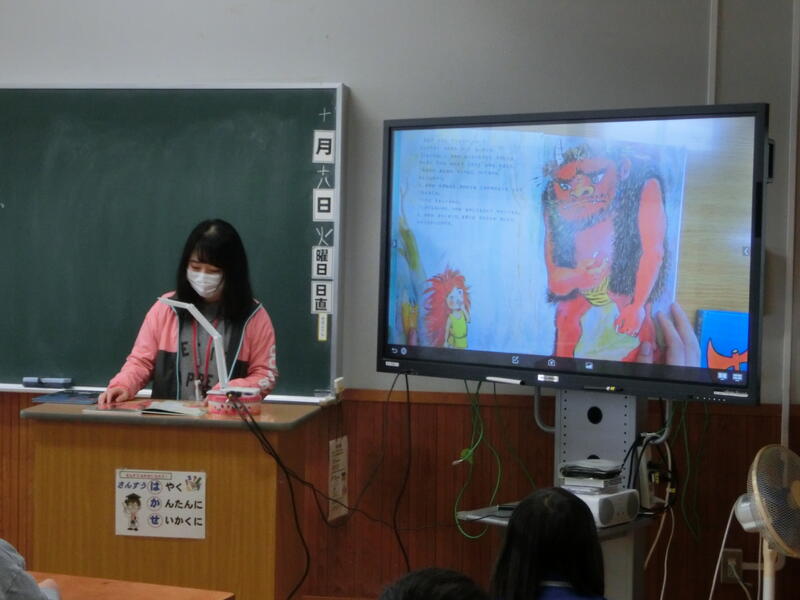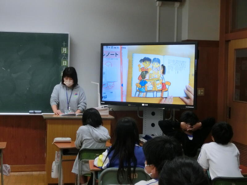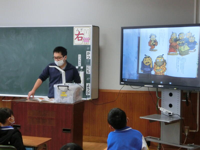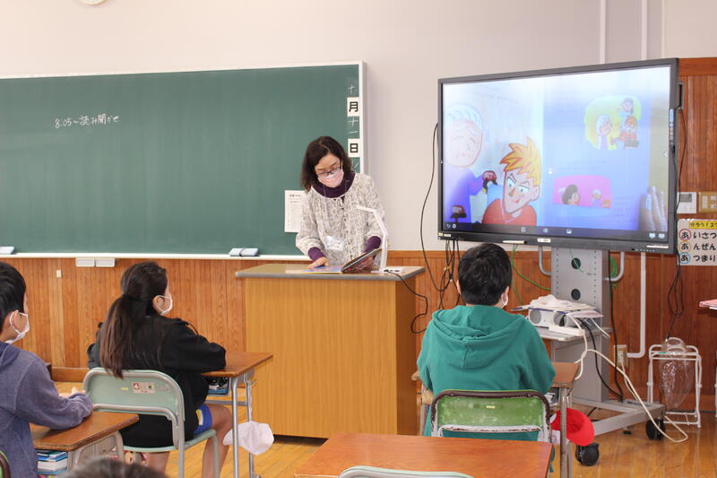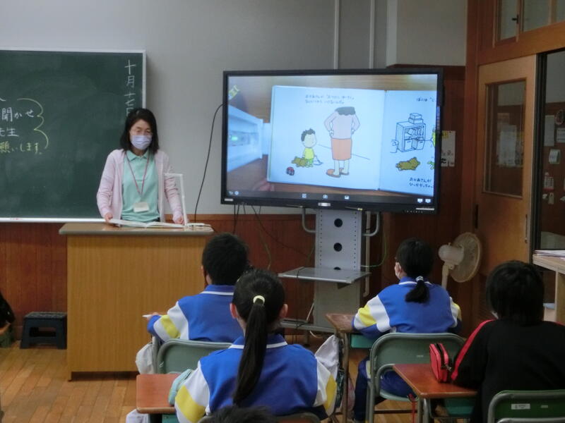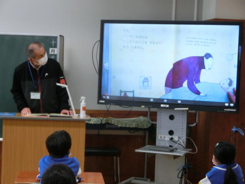 10月の“読み聞かせボランティア『にじいろ会』”による読み聞かせを行いました。今回も児童たちは真剣に、そして楽しそうに聞き入っていました!ALTのジェイソン先生も読んでくれています!!次回のにじいろ会による読み聞かせは11月1日(火)の予定です。お楽しみに!!