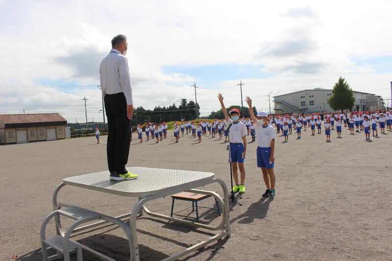 9月1日、予定通りに2学期始業式を迎えることができました。小堀校長からは『みなさんと元気なあいさつを交わすことができたことをたいへん嬉しく思います。今学期も健康に注意して過ごしていきましょう。夏休みの思い出は何ですか?校長先生は高校野球の甲子園大会で感動しました。みなさんにも心が揺り動かされる経験をしてほしいです。2学期にお願いしたいことは、学び合い学習を進め、みんなで分かるようにしていくこと、大きな行事を実施するために、感染症対策を徹底することです。コロナウイルスの感染を防ぐために、いろいろなことを学び、守り、がんばりましょう』という講話がありました。2、6年生代表児童の作文発表の後、児童指導主任からの話がありました。まだまだ不自由な学校生活が続くと思われますが、有意義な学期になるように、自覚をもった行動をしていきましょう!2学期も御理解、御協力をお願いいたします!!