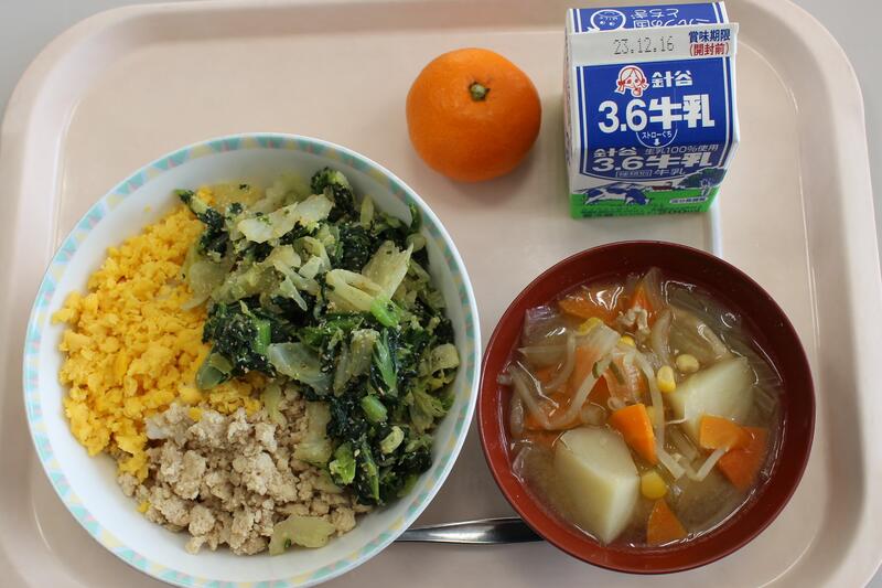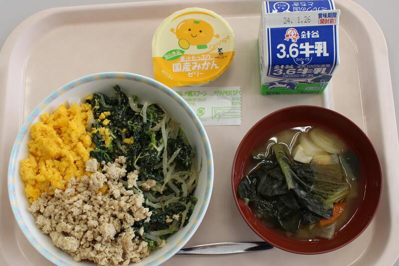 ごはん、牛乳、宮崎チキン南蛮、切り干し大根のあえもの、さつまいものみそ汁、日向夏(ひゅうがなつ)ゼリー