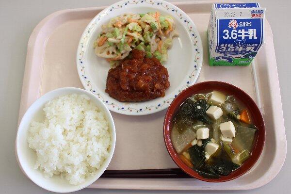 本日の給食 投稿日時 : 2020/11/30 芳賀北小学校 カテゴリ: 本日の給食 ごはん、牛乳、ハンバーグケチャップソース、れんこんサラダ、呉汁 {{options.likeCount}} {{options.likeCount}}