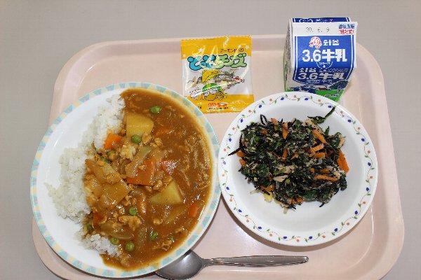 ごはん、牛乳、チキンカレー、ひじきサラダ、とっとチーズ