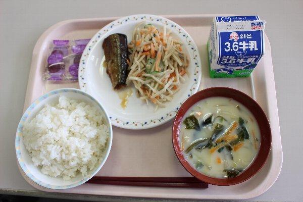 ごはん、牛乳、さんまのマーマレード煮、ごぼうサラダ