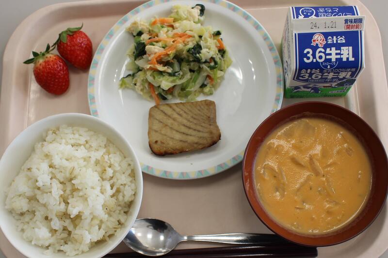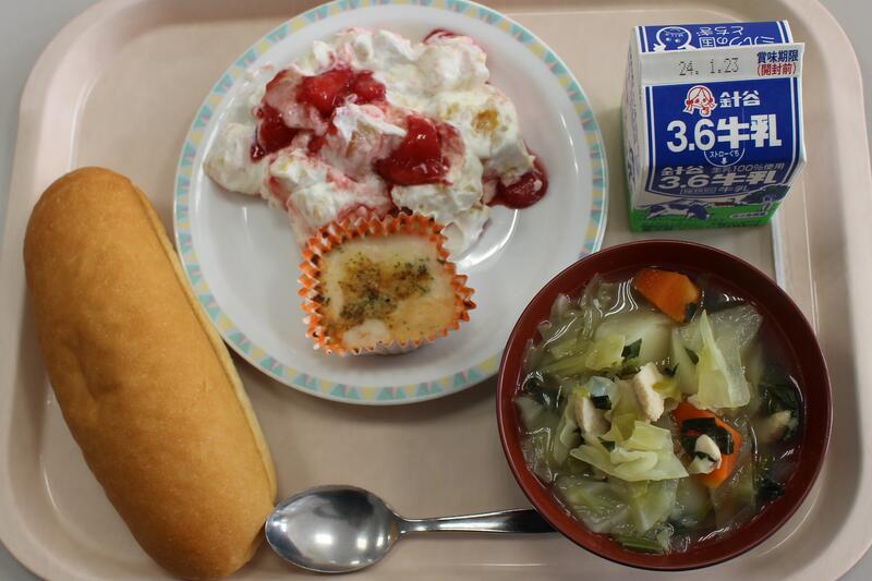 本日の給食 1/12 ※いちごを寄贈していただきました!