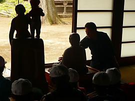4年生は、6月6日(木)に、芳賀町にある城興寺(延生地蔵尊)の見学に行ってきました。総合的な学習では芳賀町の「昔」について調べているところです。そこで、この地域の歴史や生活について多くの事を残している「城興寺」に直接行って、御住職様にいろいろとお話を聞かせていただきました。大変分かりやすいお話でした。また、子どもたちの質問にも懇切丁寧にお答えいただきました。大変貴重な体験となりました。ありがとうございました。