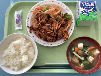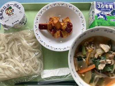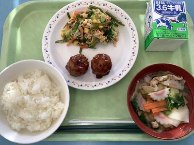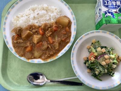 今日は4年生のセレクト給食の日でした。主菜と副菜、デザートを、豆腐ハンバーグ、スパゲッティサラダ、とろけるプリンからも選ぶことができました。スパゲッティサラダが大人気でした。たくさん食べて大満足なランチルーム最終日になりました。