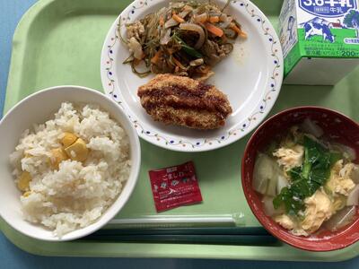 本日の給食のごはんは5年生が田植え・稲刈りをしてくれたお米で炊きました。ピカピカに輝く新米の美味しいごはんでした。5年生の皆さんありがとうございました。