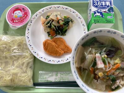 野菜を食べようタンメン チキンナゲット 中華和え お楽しみデザート 牛乳
