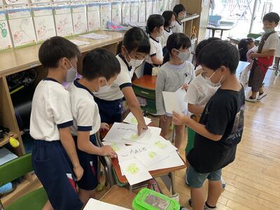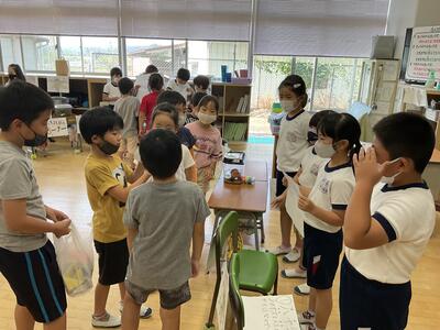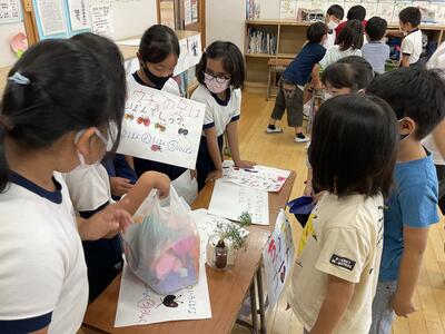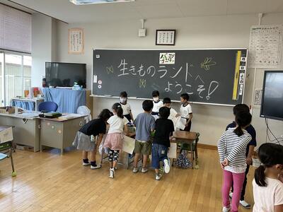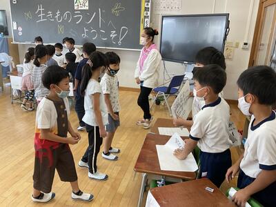 2年生が、生き物ランドを開いてくれました。1年生は、いろいろなコーナーを体験しました。