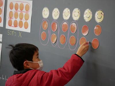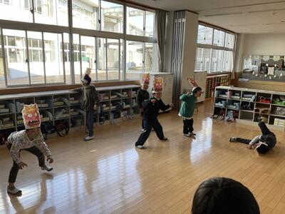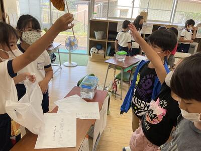 5年生のお兄さんお姉さんが、ボランティア活動で算数を教えに来てくれたり、手品を見せに来てくれたり、折り紙を教えてくれたりしました。