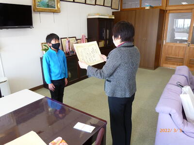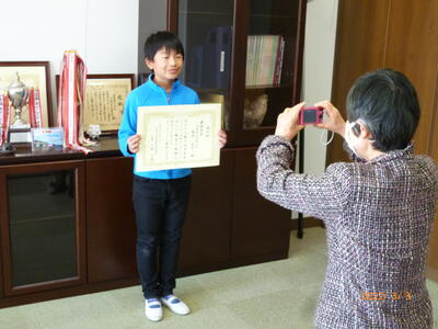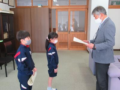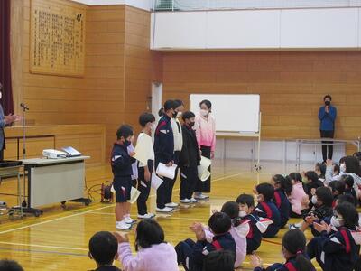 はじめに、表彰がありました。優秀児童生徒表彰(1名)と校長特別賞(16名)が表彰され、代表児童は校長室で、それ以外の児童は教室で表彰を受けました。