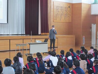 その後、3人の代表児童が一年を振り返る作文を発表し、校長先生からのお話と児童指導主任からのお話をいただきました。