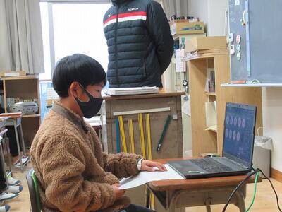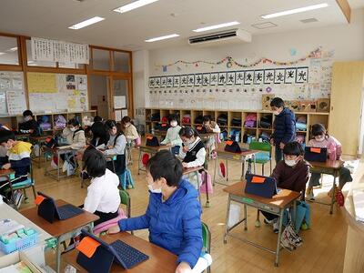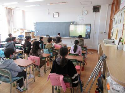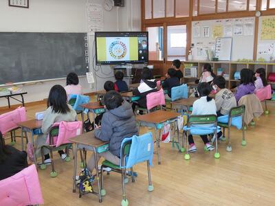 今日は、子供たちの学校生活にとって1年間の締めくくりとなる「修了式」が行われました。校長室とオンラインで教室とつないで行いました。