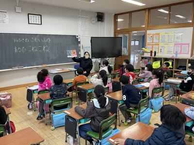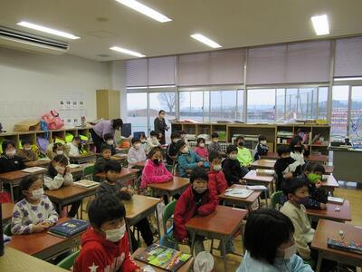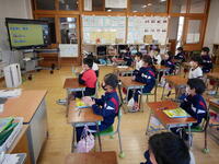 内田先生の元気な声と、「いか!」「たこ!」と絵に反応する元気な1年生の声が