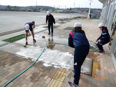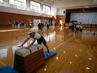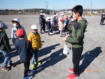 休み時間には、応援団の児童たちが全体練習前の打合せや動きの確認を熱心に行っています。