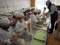 図書委員が、給食中に放送でメニューと本の紹介をしています。