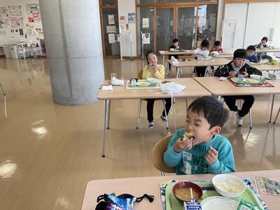 おいしそうなメニューがでてくる本を選んで、給食の献立に入れてもらっています。
