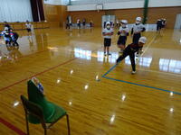 どうやったら、素早くカラーコーンを回れるか、工夫しながら練習していました。