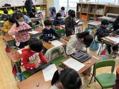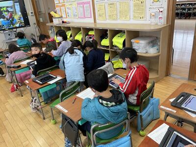 タブレットで、自分の名前を打ち込みました。みんな上手にできました。