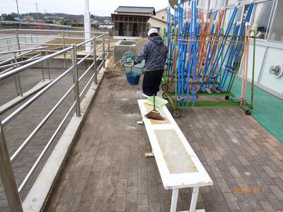窓掃除の業者さんが来て、窓をきれいにしてくれました!業者さんの仕事の速さと、きれいになった窓に、感嘆の声があがっていました。