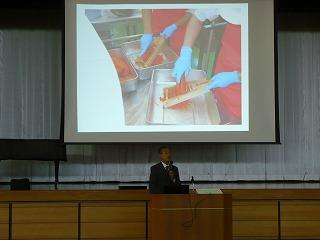 今日の給食のメニューでもあり、給食室での調理の様子も紹介されました。