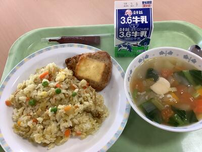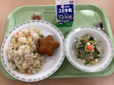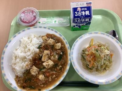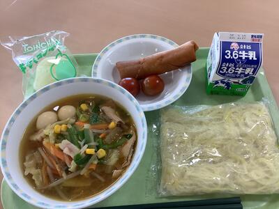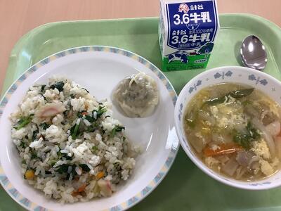 今日は人気の高いメニュー3品(揚げパン、春雨サラダ、コーンポタージュ)にお応えしています。3年1組、3年2組、5年2組からのリクエストです。先月はすりごまきなこ味の揚げパンでした。ココア味とどちらが好みでしょう?好みは人それぞれ、いろいろ食べて、食の幅を広げてみてください。